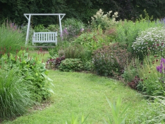 Schattenhecke mit Eisenhut, Hosta, Cimicifuga, Anemonen